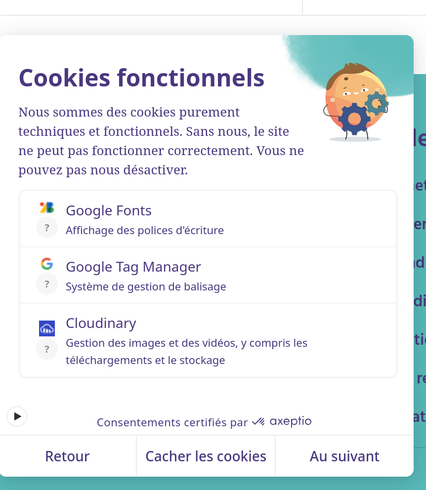 Dans le bandeau de cookies, la limite de temps présente dans l’écran de description des cookies fonctionnels est très difficilement contrôlable par un utilisateur au clavier.