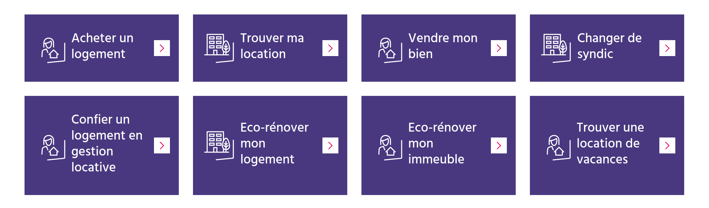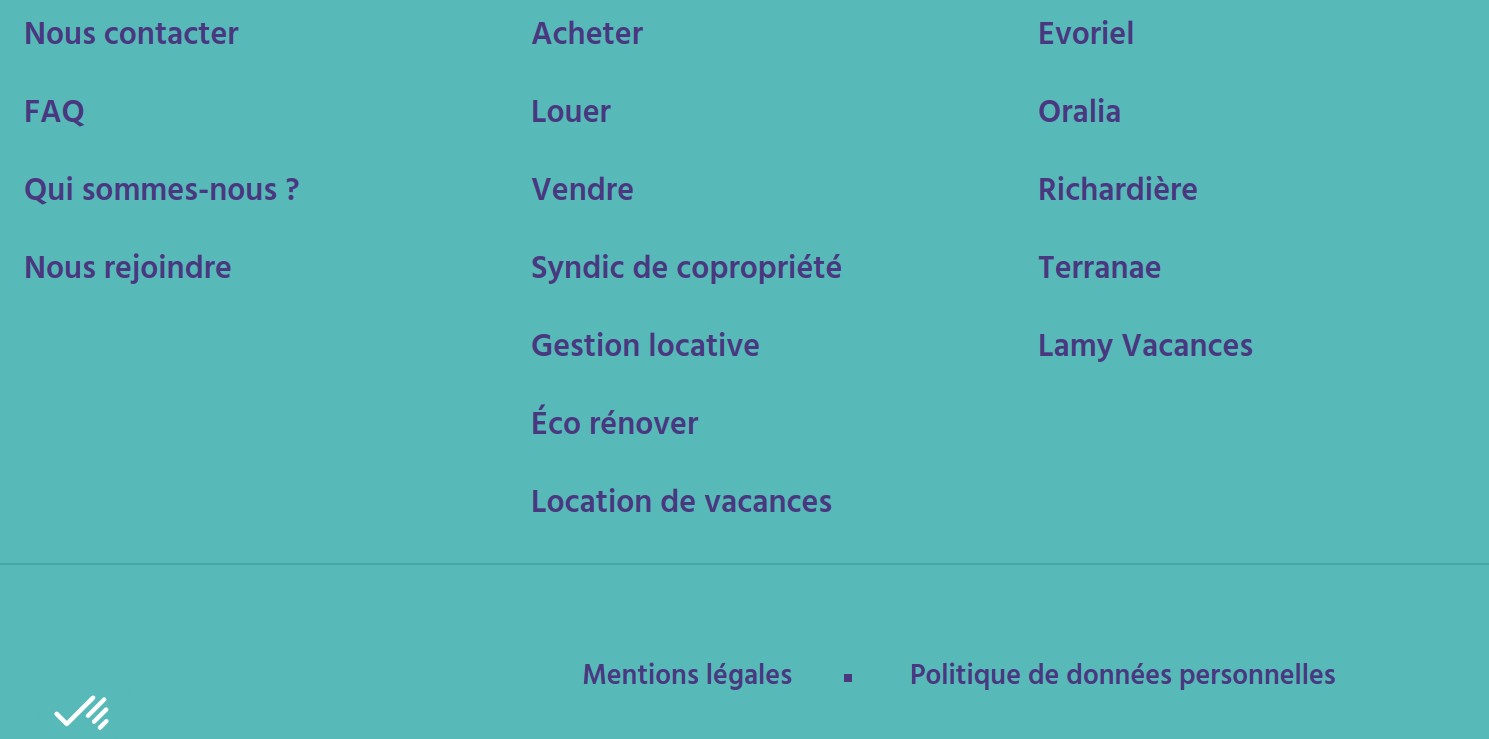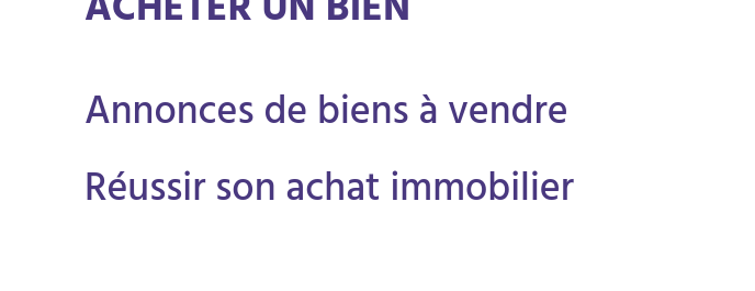 Les liens Trouver une agence, Le guide immo et Espace client dans le menu principal ne sont pas structurés par une liste.