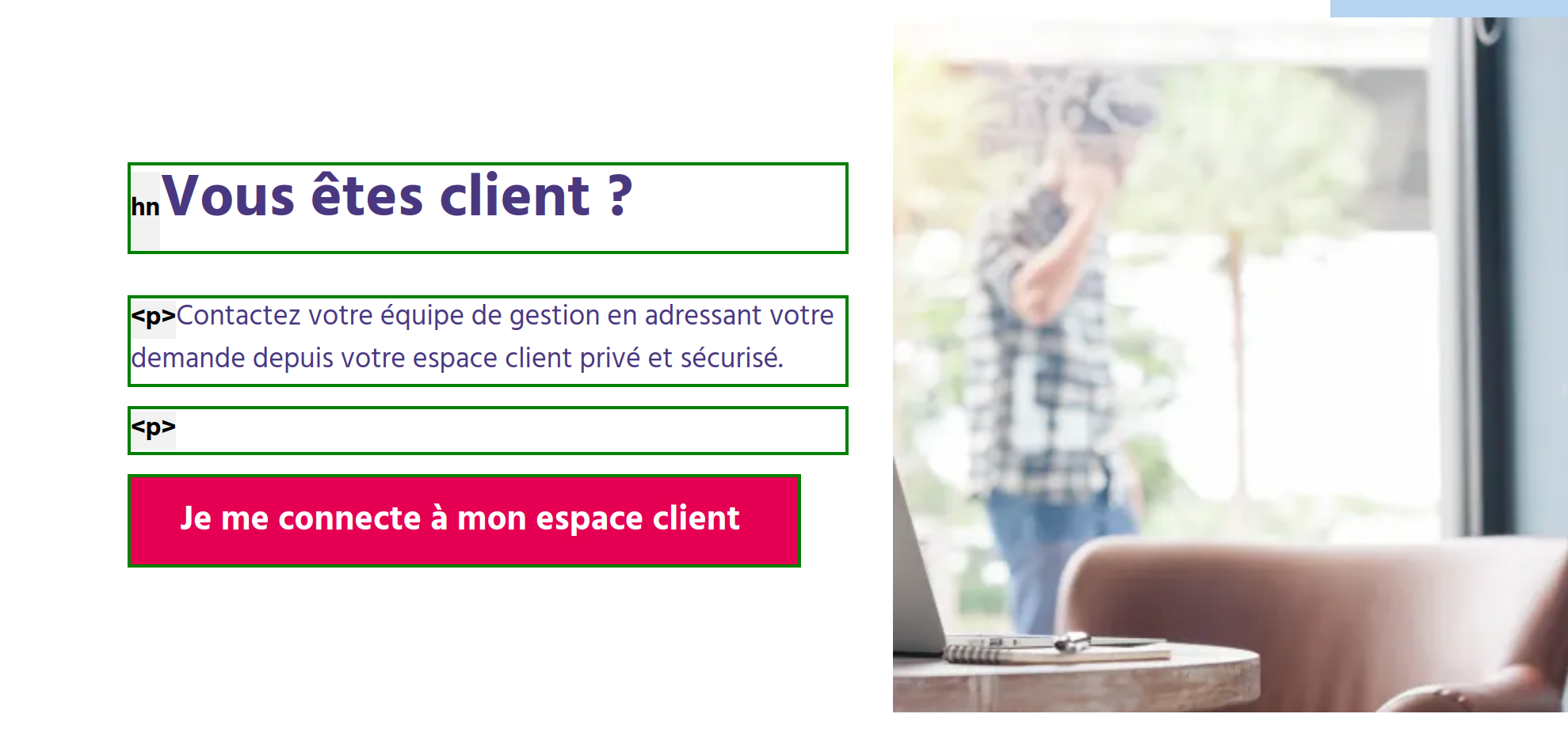 Le lien Espace client dans le menu et le menu mobile n’offre pas un rapport de contraste suffisant.