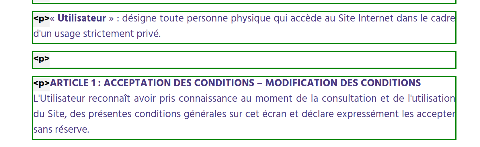 Les labels (Louer son logement, éco-rénovation…) dans les articles ne sont pas correctement structurés.