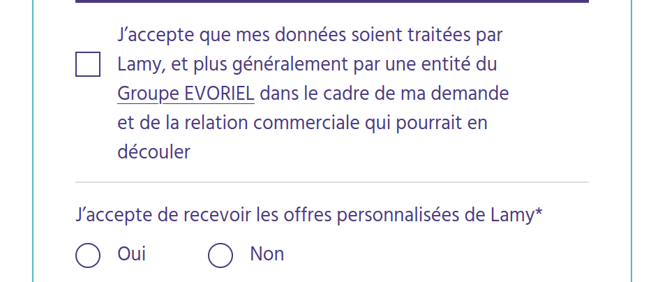 Dans le formulaire, le caractère obligatoire de la case à cocher n’est pas indiqué.