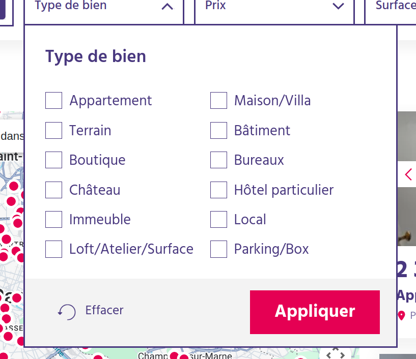 Dans les filtres, le bouton de validation du champs de localisation n’a pas d’intitulé.