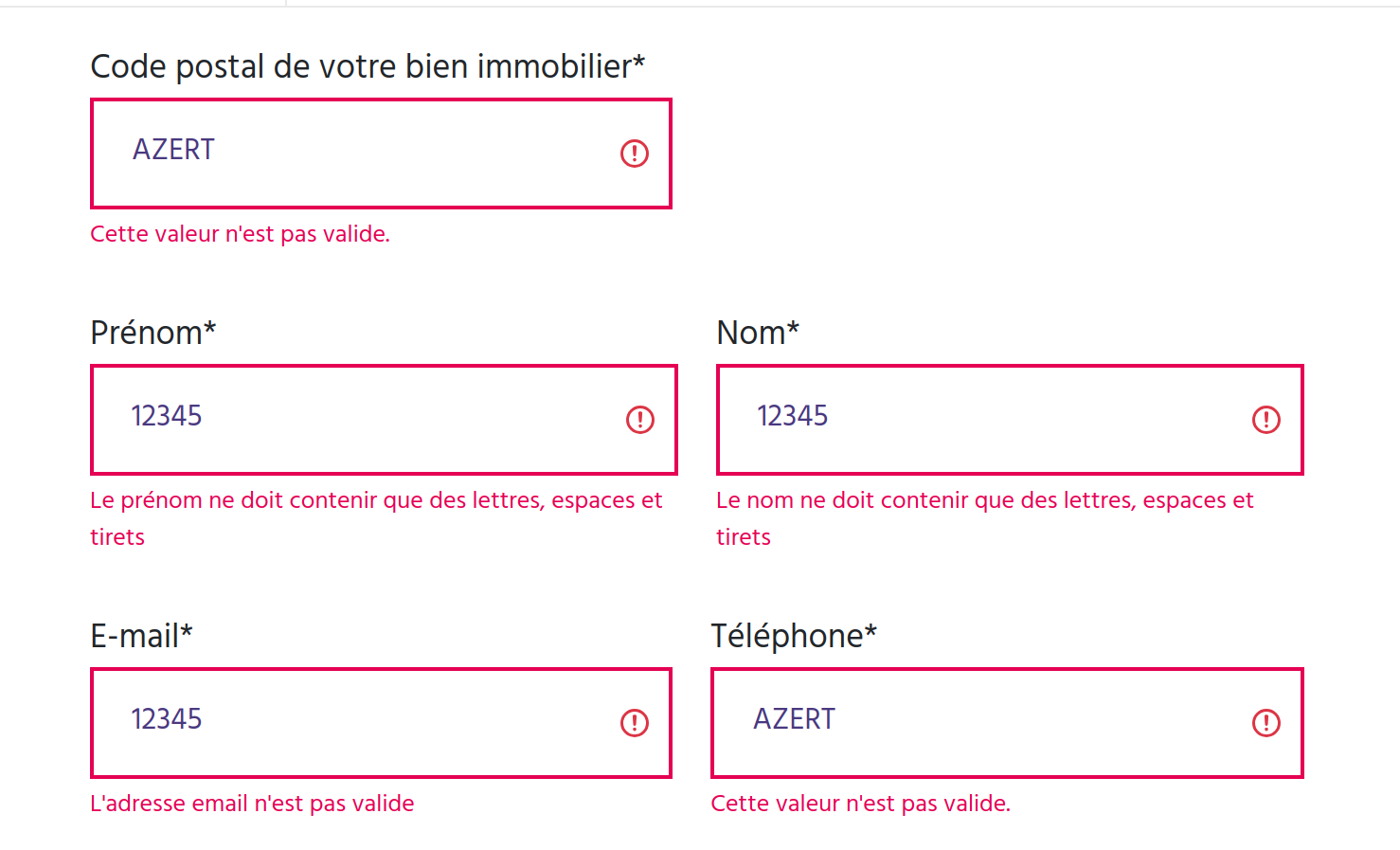 ➡️ Ajouter des exemples réels de saisie dans les message d’erreur (ex. “L’adresse e-mail n’est pas valide (exemple : laura.dupin@lamy.fr )”).-